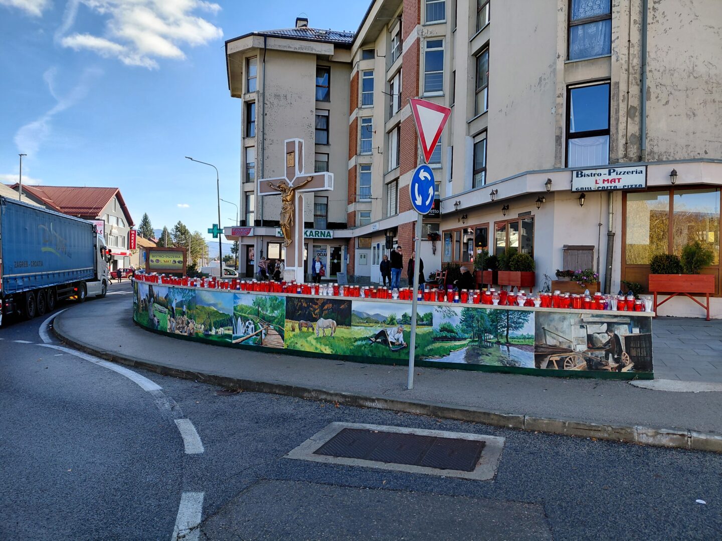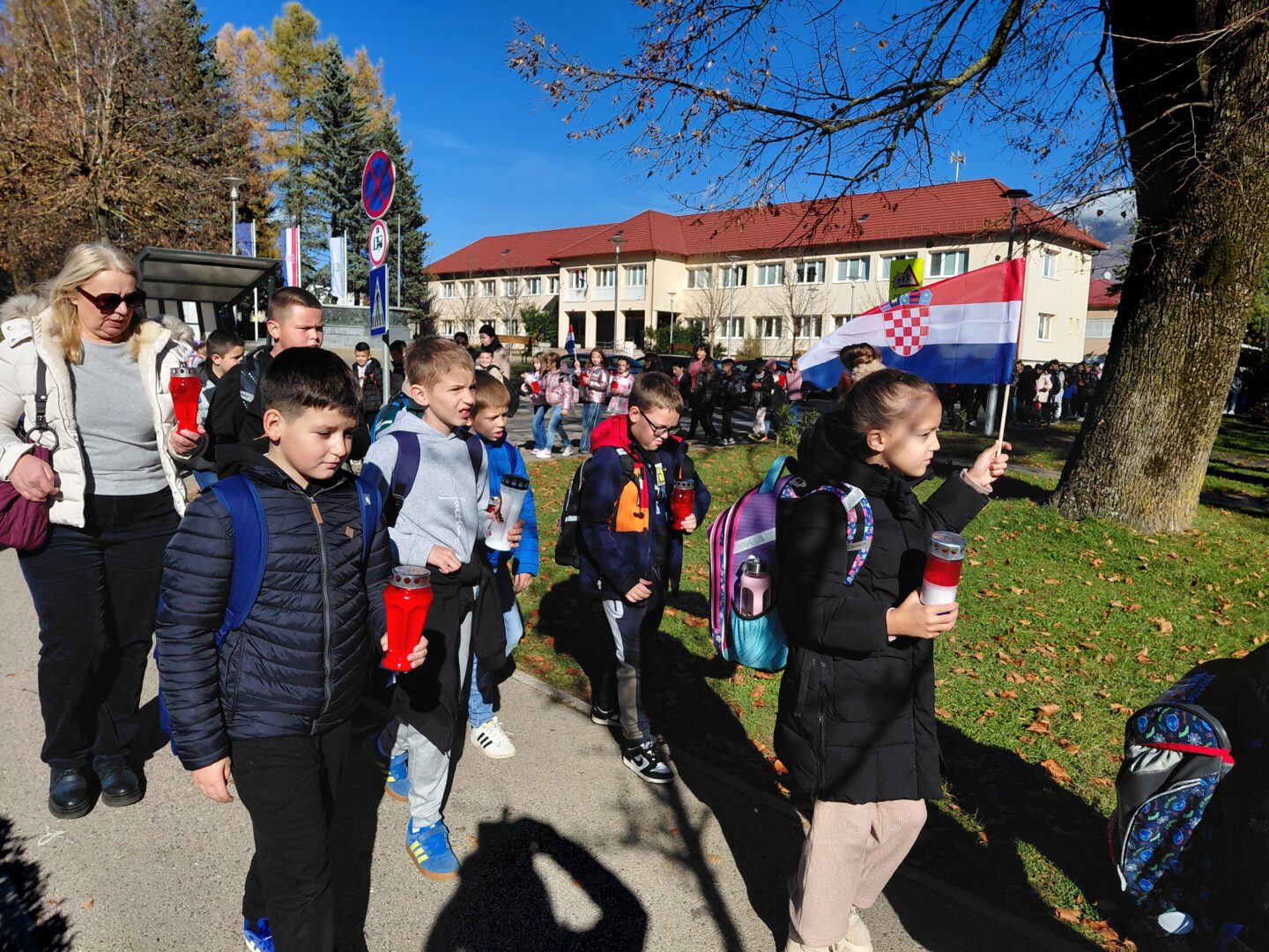 učitelji. U koloni s upaljenim lampionima uputili su se do križa u centru Korenice. Nakon što su