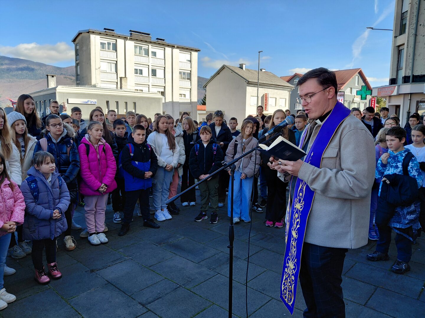 U petak 14. studenog. 2025., u 11.30 sati ispred OŠ dr. Franje Tuđmana su se okupili svi učenici i