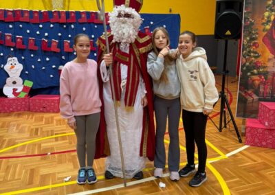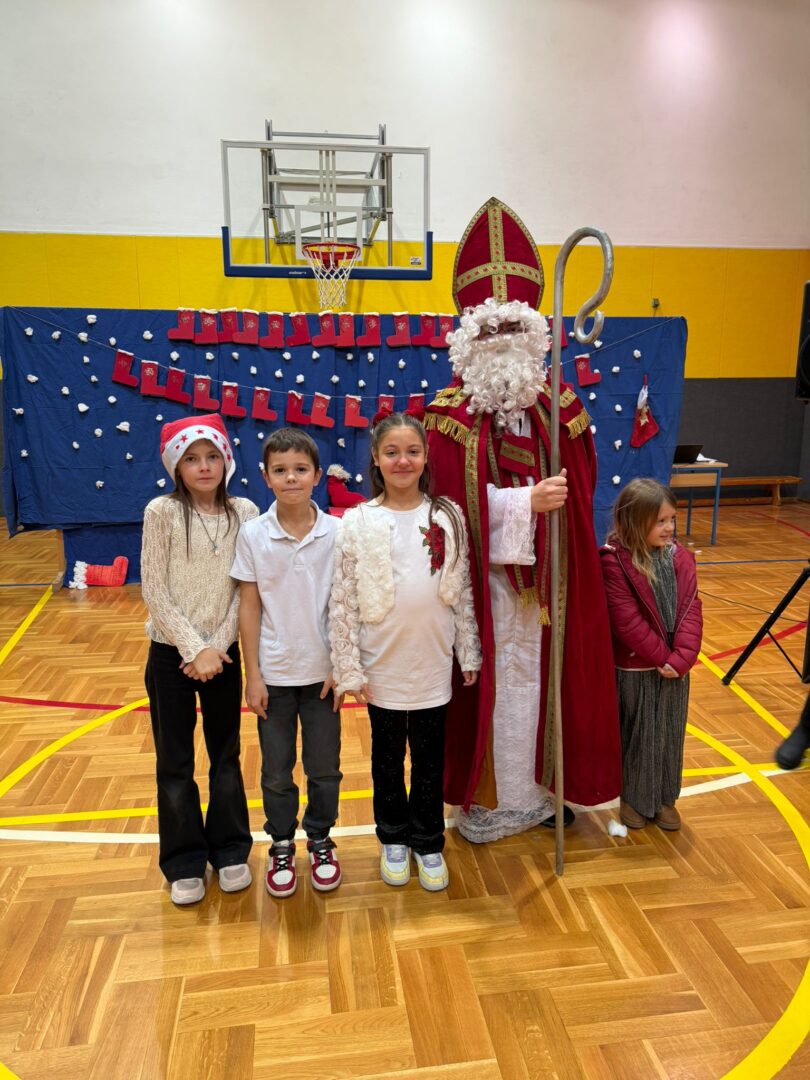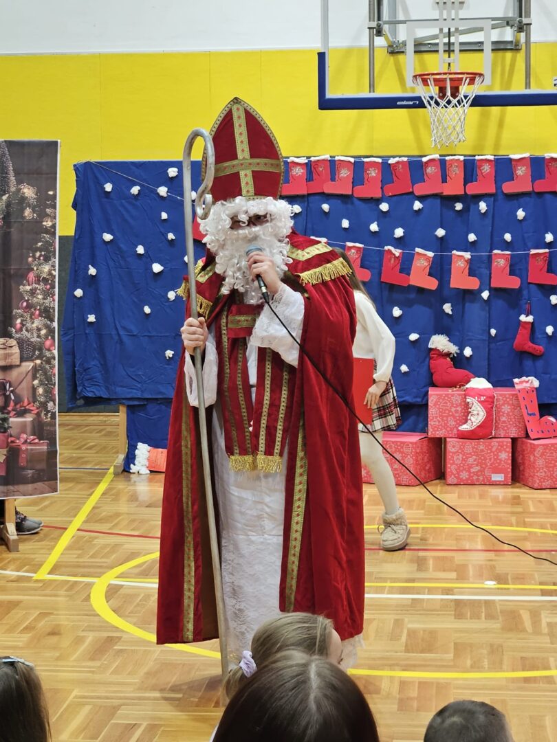 U petak, 5. prosinca 2025. godine, u školskoj dvorani održala se svečana priredba povodom dolaska svetog Nikole. Učenici su uz pjesmu, recitacije i ples unijeli radost i blagdanski duh u našu školu te oduševili okupljene učenike, učitelje i roditelje. Uz veselje i zajedništvo, priredba je svima ostavila lijepu uspomenu i najavila početak najljepšeg vremena u godini.